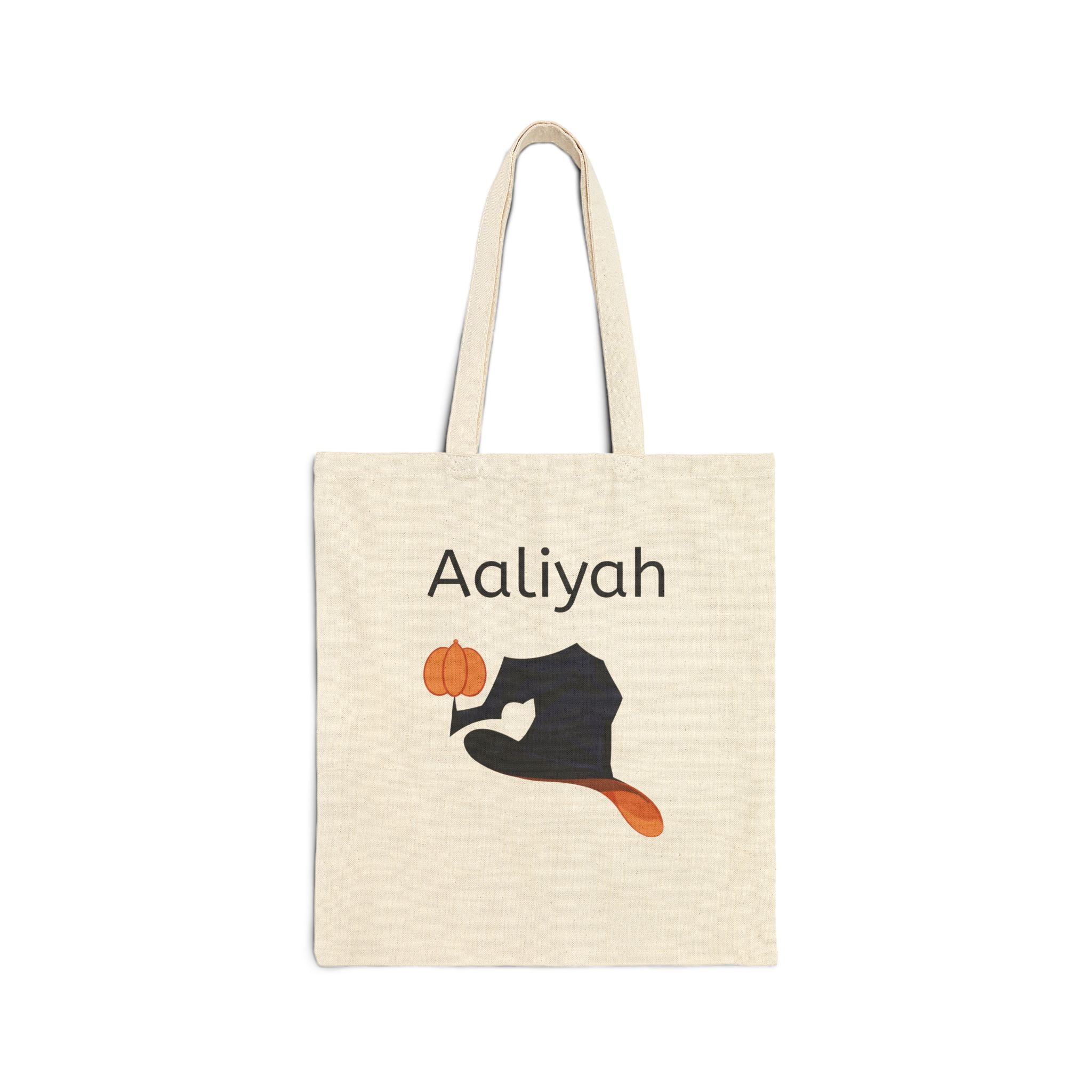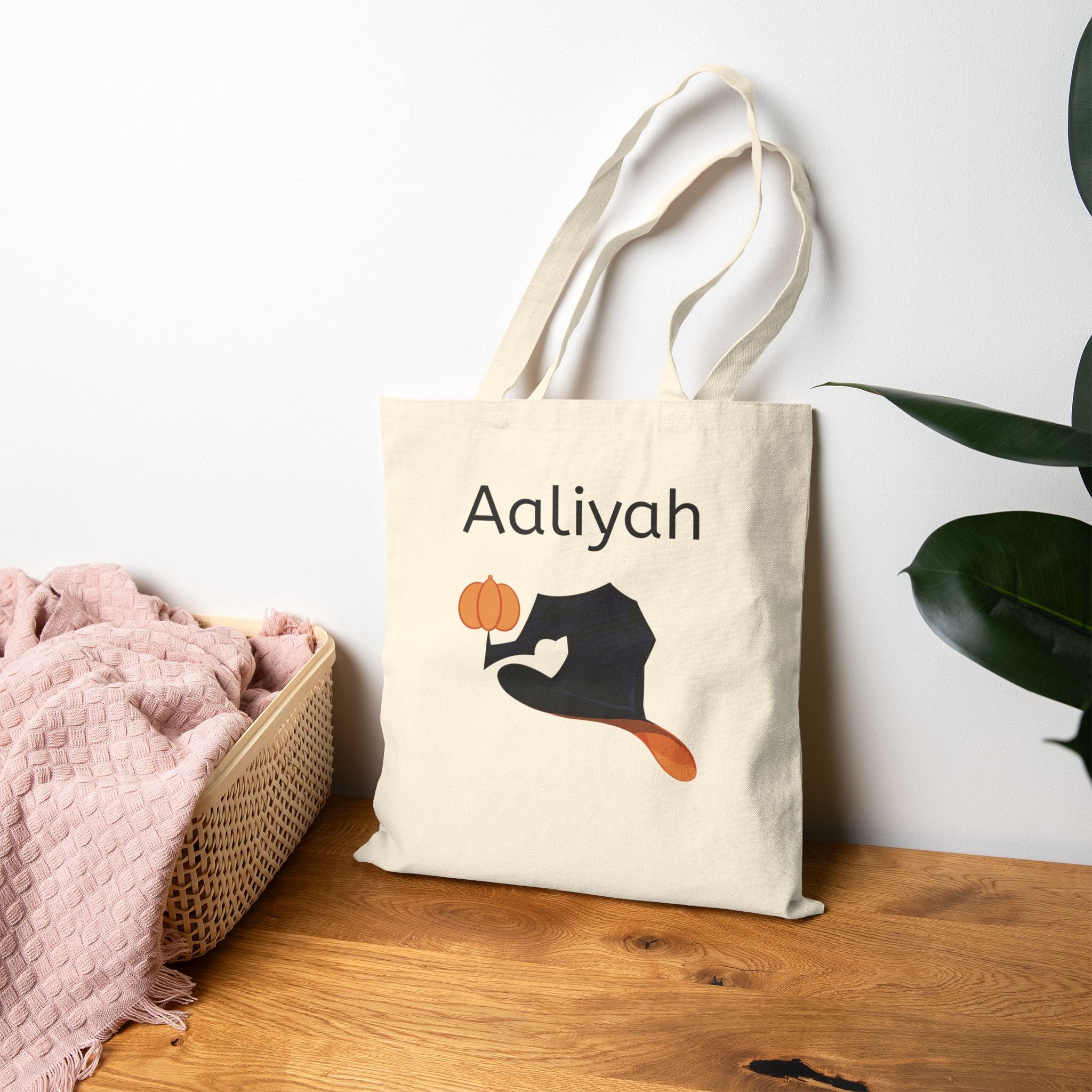 Personalized Pumpkin Witch Hat Halloween Tote Bag | Cozy Spooky Aesthetic | Fall Season Carryall