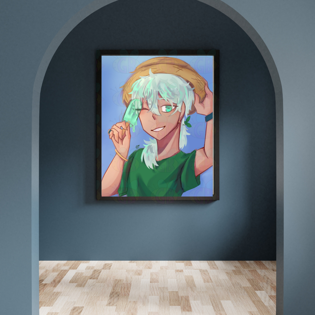 Popsicle Mint is a refreshing and modern portrait that captures a young woman in soft, cool tones of mint, peach, and white. The light, playful colors and serene expression evoke a sense of calm, joy, and summer ease — like that first bite of your favorite popsicle on a warm day.